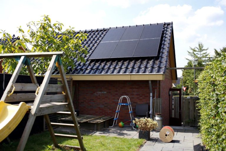 12 zonnepanelen 300 Wp op garagedak